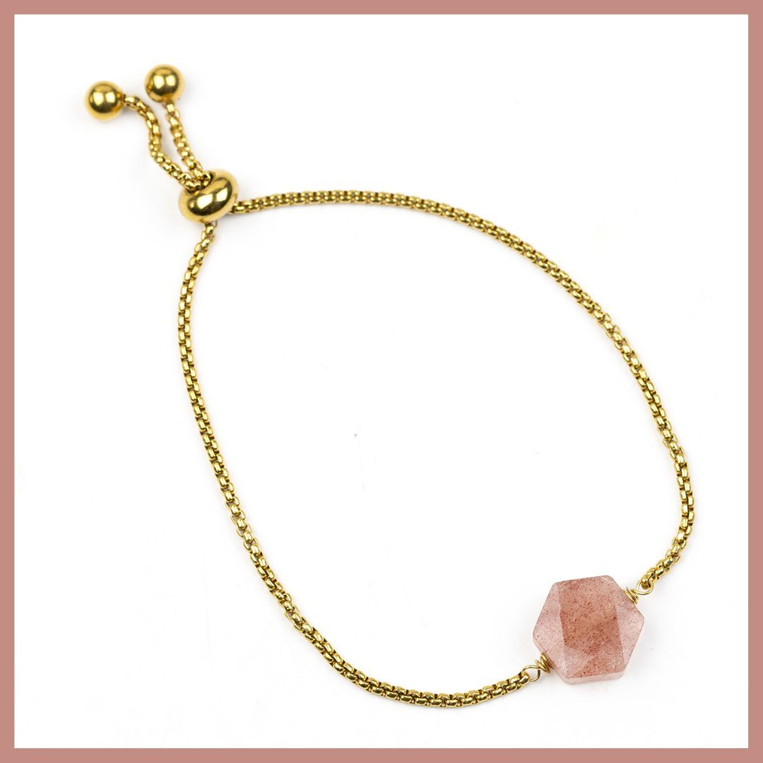 The Gemstone Hex Bracelet blends simple design with natural beauty. A faceted hexagonal gemstone bead sits at the center of a sleek adjustable stainless steel bracelet, creating a refined balance of shimmer and color. The geometric focal bead adds a modern touch, making this an easy-to-wear piece that pairs effortlessly with both casual and dressy looks.