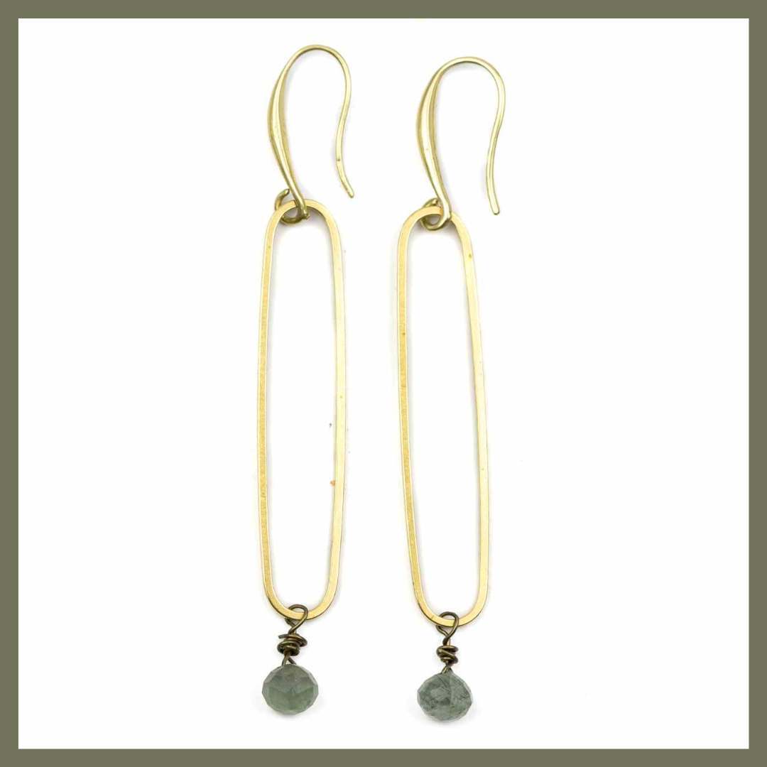 The Long Oval Brass & Gemstone Earrings feature a minimalist design that highlights the natural beauty of gemstone color and brass texture. The elongated oval frame creates elegant movement, while the single gemstone drop adds a touch of organic charm. This design blends warm metallic tones with a soft pop of natural color, making it versatile enough for both everyday wear and special occasions. Simple, stylish, and timeless—these earrings are a modern take on classic handmade jewelry.