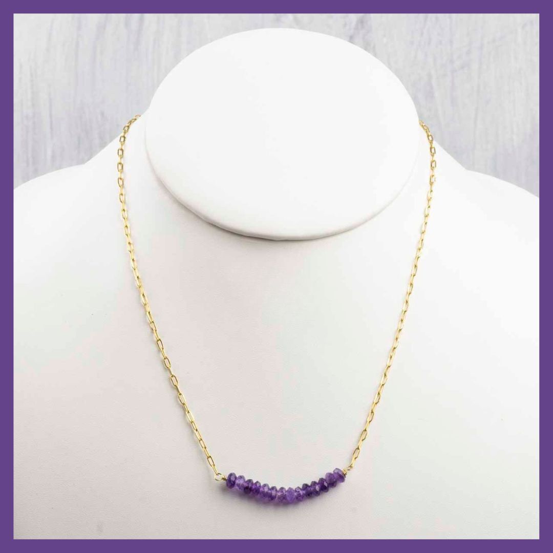 Amethyst has long been associated with calm, clarity, and balance, making these necklaces a meaningful choice as well as a versatile design element. Whether styled simply or paired with metal accents and pendants, amethyst rondelle necklaces offer a refined option for everyday wear and special occasions alike.